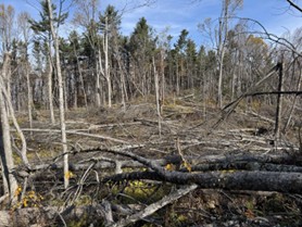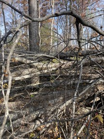 Our tight knit team spent the first day hiking though drenching rainfall, and whipping winds, but we joked and laughed through it all. Our spirits were high. We encountered several hikers, many bearing a warning of what lay ahead. They warned us of blowdowns and bears and treacherous conditions. We took these warnings to heart but remained confident. We thought we had seen it all at this point in the season, but we weren’t prepared for the next day. The forest ahead was flattened. I was gazing across an NFL stadium sized hole in what had once been a standing forest. I had seen Helene’s wrath before, but this was different. This was massive and it fell directly over the trail. Our previous surveys showed that these hard-hit areas were typically in small pockets. This did not follow the trend. It was unrelenting. We were in trouble and we knew it.